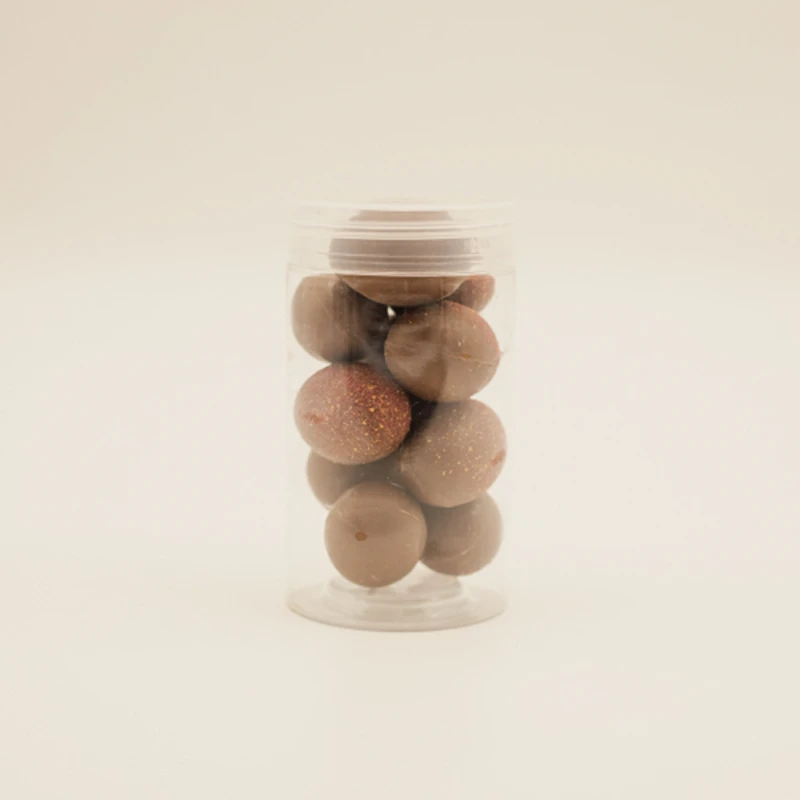 Молочный шоколад с хрустящим пралине: внутри каждой конфеты — нежная фундучная паста и карамелизированный фундук.