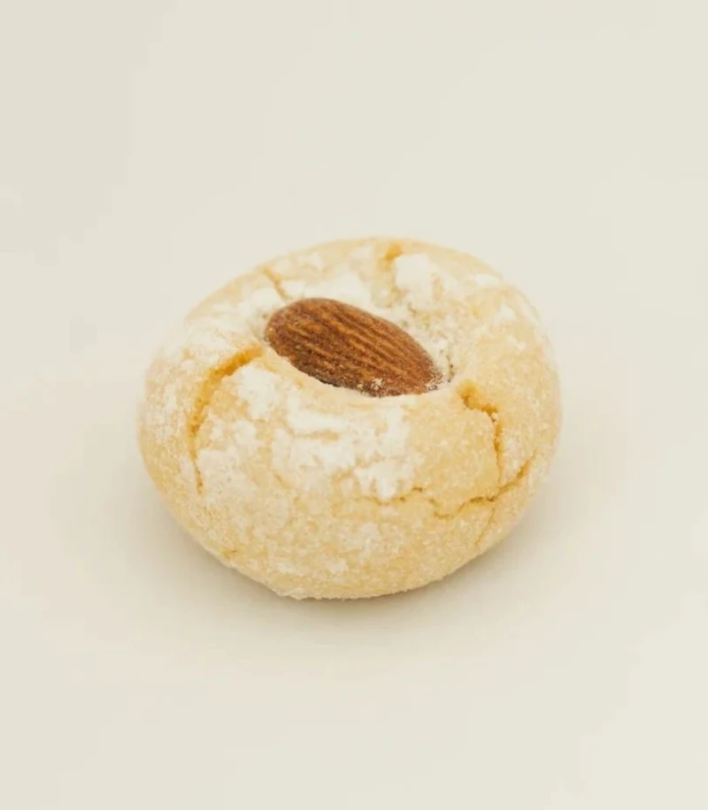 Мягкое печенье из миндального марципана, с цедрой апельсина, ликером Амаретто и орешком миндаля в центре. Десерт без глютена